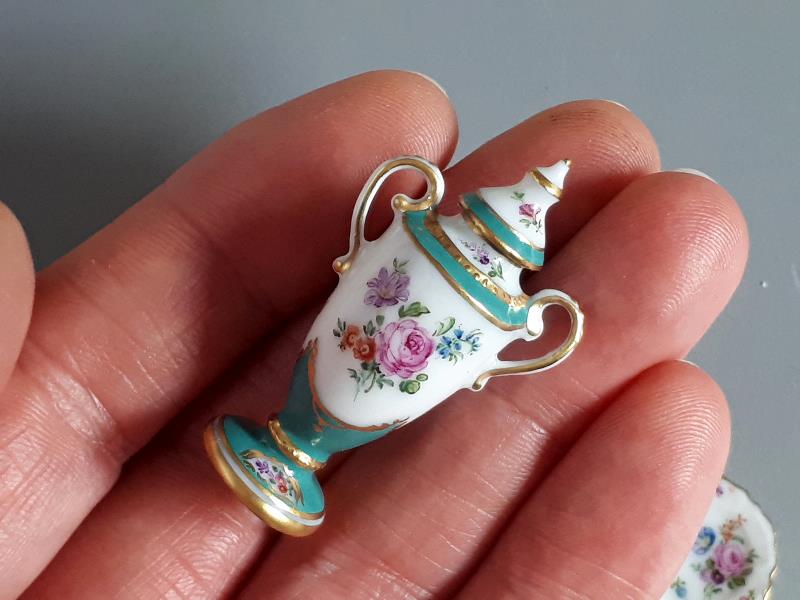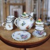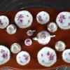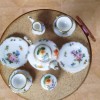Each plate is painted with different flowers.