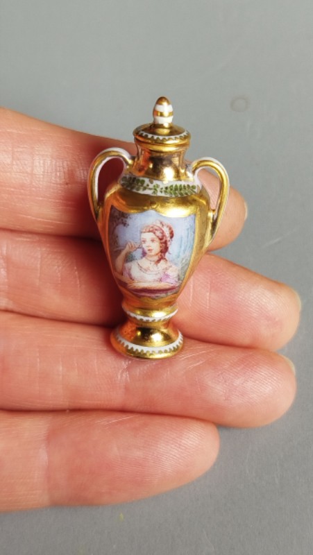 Oil painting on metal brooch